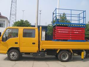 汽車載式液壓升降平臺是由升降臺和汽車配套改 裝而成的。它接取汽車引擎動力,實現(xiàn)升降臺的升降功能。適用于大 流動量的高空作業(yè)。