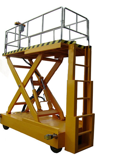 液壓升降臺加裝軌道輪和行走驅(qū)動程序機構(gòu),以實現(xiàn)升降臺在軌道上行走?蛇x動力:人工動力;交流電源、直流電源。升降臺可滿足大負載量要求。